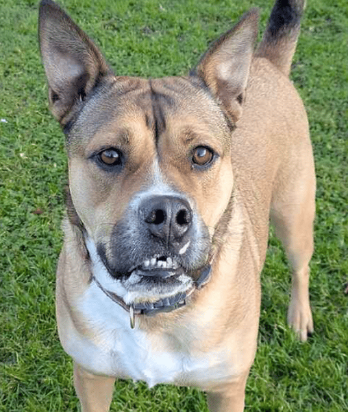 - Breed(s): Crossbreed - German Shepherd, Staffordshire Bull Terrier