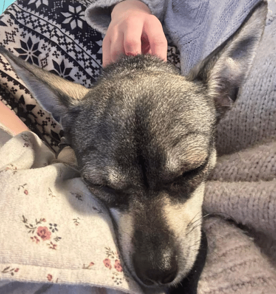 Bella is a one year old female chihuahua cross who was recently surrendered to us due to unsuitable domestic circumstances. Not cat tested. Can live with or without other dogs. Respectful children 10 plus. Bella is a nervous little girl who will need time and reassurance to build more confidence . She is wary of new people, and it will take time for her to bond but one week in and she loves sitting and cuddling with her foster parents. Bella gets on well with other dogs and could be rehomed with or without another dog in her forever home. She would need a quiet home with experienced dog owners who have time to spend with her and work with her to help her blossom into a more self assured and confidant companion. She has not been cat tested and could live with respectful children aged ten years and over.