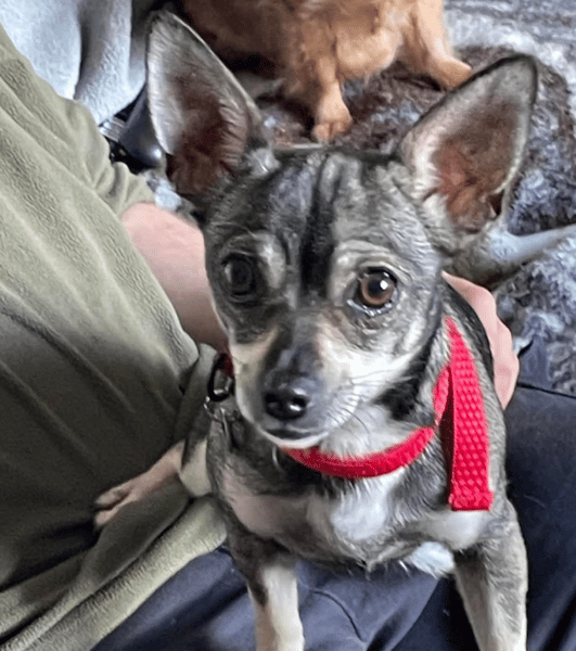 Bella is a one year old female chihuahua cross who was recently surrendered to us due to unsuitable domestic circumstances. Not cat tested. Can live with or without other dogs. Respectful children 10 plus. Bella is a nervous little girl who will need time and reassurance to build more confidence . She is wary of new people, and it will take time for her to bond but one week in and she loves sitting and cuddling with her foster parents. Bella gets on well with other dogs and could be rehomed with or without another dog in her forever home. She would need a quiet home with experienced dog owners who have time to spend with her and work with her to help her blossom into a more self assured and confidant companion. She has not been cat tested and could live with respectful children aged ten years and over.